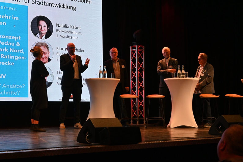 Aufgerufen und eingeladen zur Mobilitätskonferenz hatten die Bürgervereine aus Buchholz, Ehingen, Großenbaum/Rahm, Huckingen, Hüttenheim, Mündelheim, Serm, Ungelsheim, Wanheim-Angerhausen, Wedau/Bissingheim und der Verband Duisburger Bürgervereine (VDUBV). Mehr als 200 Teilnehmende hatten im Vorfeld der Podiumsdiskussion die Möglichkeit, sich an den Ständen von Parteien, Bürgervereinen und Deutscher Bahn zu informieren. Auch Mitglieder der Verkehrswacht sowie des Allgemeinen Deutschen Fahrrad-Clubs (ADFC) standen zum Austausch bereit.