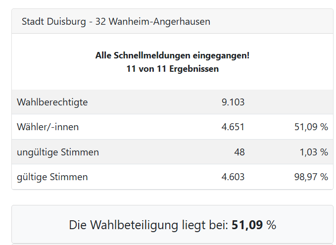 Stadt Duisburg Ratswahl 14.09.2025 Bezirk 32 Wanheim- Angerhausen